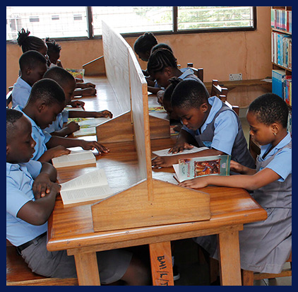 A well furnished, floor-tiled library for pupils at all levels.