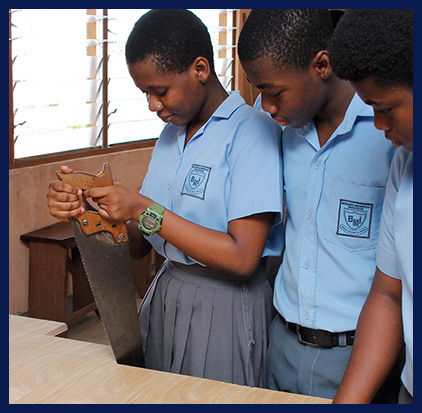 The school has a well-stocked Pre-Technical Skills workshop where pupils go for practical lessons in technical drawing, metal work, masonry, and carpentry.